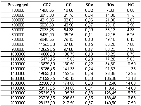 di CO2 (valore stimato per 400.000 passeggeri annui) corrispondono