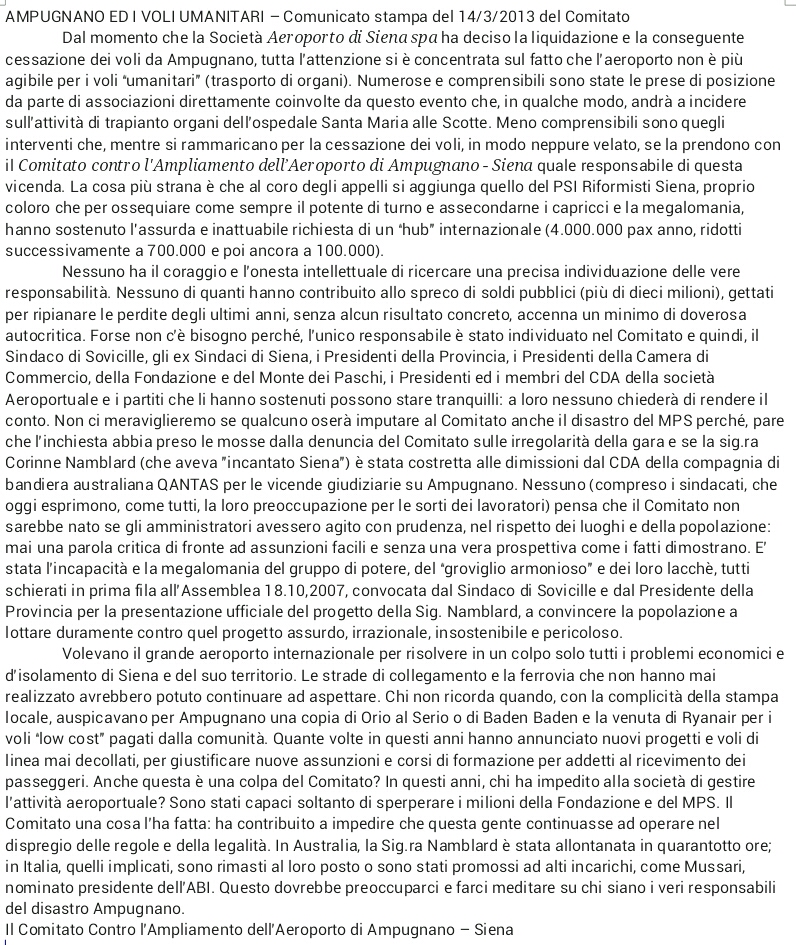 dell�aeroporto di Ampugnano-Siena. Il Comitato è