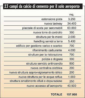 taxi (altri 8-10 ettari aggiuntivi).
